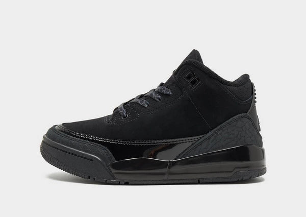 The Air Jordan 3 Retro Black Cat (2025) is a revival of an iconic silhouette that exudes stealthy elegance. Wrapped in premium black nubuck, the sneaker showcases subtle accents of dark charcoal on its signature elephant print overlays. The monochromatic design is elevated by black patent leather, unique elephant print laces and minimal black and chrome branding, creating a clean yet powerful aesthetic that resonates with Jordan’s legendary "Black Cat" persona.